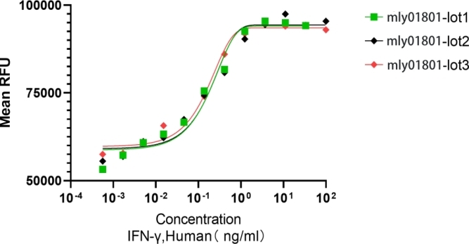 Recombinant  Human IFNγ  (Cat. No. mly01801)  stimulates proliferation   of   Mo7e   cells.   The   ED50      for   this   effect is ≤2 ng/mL. The activity of mly01801 was higher than the other competing product.